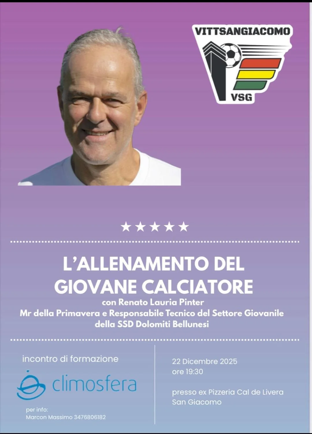 Incontro di formazione con Renato Lauria Pinter mister della Primavera 4 e responsabile tecnico del settore giovanile della Dolomiti Bellunesi Srl.