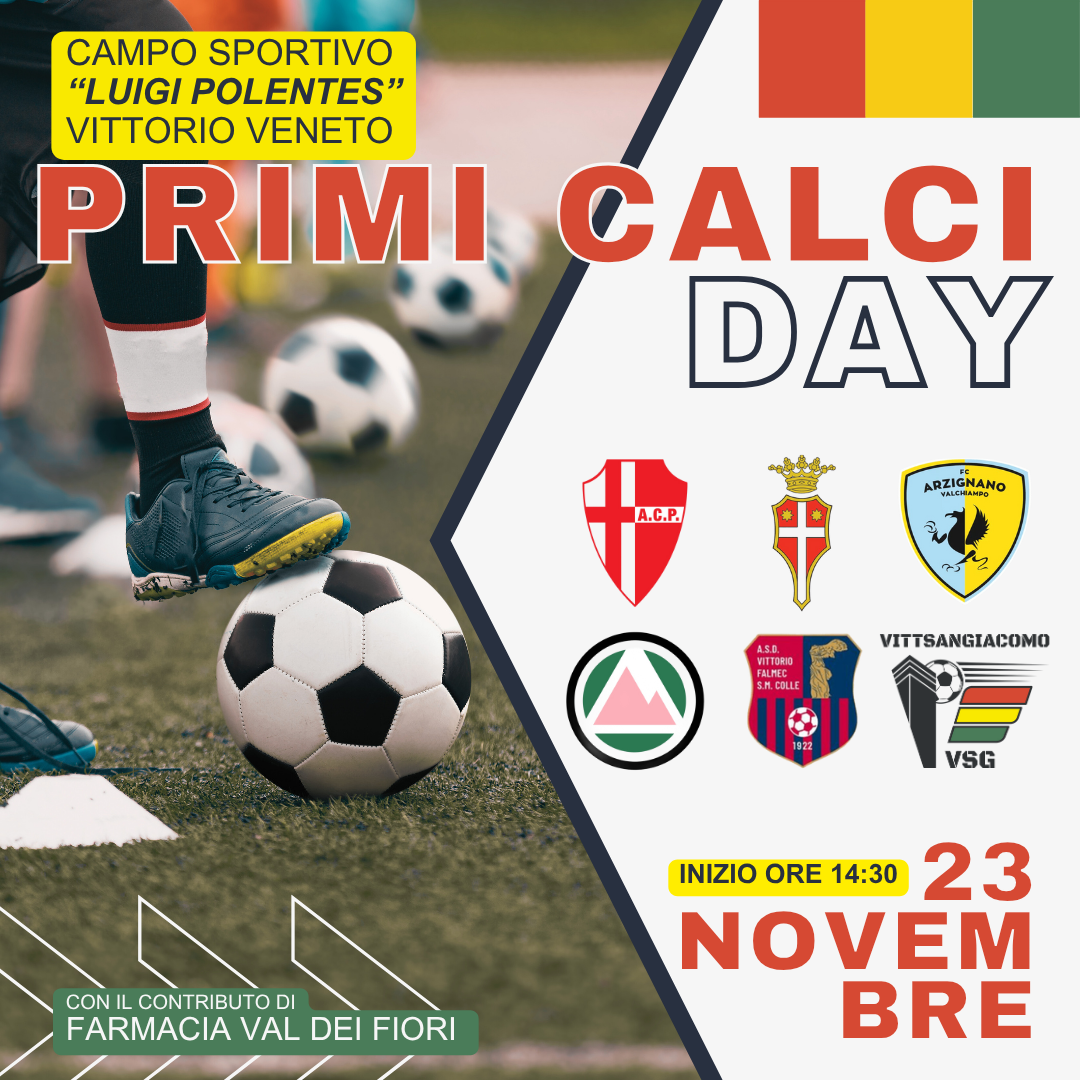 Primi calci day Primi calciSettore giovanile 11 mar Scritto da Federico Piccin 23 NOVEMBRE 2025 Presso il campo sportivo “Luigi Polentes” di Vittorio V.toInizio ore 14:30Le squadre che parteciperanno:Padova CalcioTreviso CalcioArzignanoDolomiti BellunesiVittorio Veneto FalmecVittsangiacomo CON IL CONTRIBUTO DI FARMACIA VAL DEI FIORI Padova CalcioTreviso CalcioArzignanoVittorio vento FalmecDolomiti Bellunesi Federico Piccin